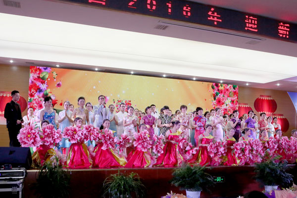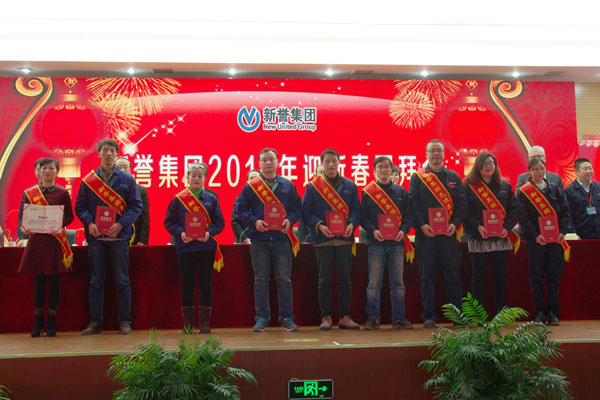 首頁 > 集團新聞 羊隨新風辭舊歲,猴攬正氣報新春!2016年1月15日下午,新譽集團大禮堂暖意濃濃,歌聲嘹亮,一年一度的迎新春團拜會正在舉行。集團大禮堂1500個座位座無虛席,集團領導、員工代表及嘉賓一同觀賞了屬于新譽自己的“春晚”。