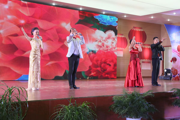 一曲氣勢恢宏的舞蹈《輝煌禮贊》拉開了文藝匯演的序幕。音詩畫《我們的領路人》展現出新譽集團領導帶領全體員工艱苦拼搏、創新發展的智慧、膽識和擔當以及全體員工與集團同呼吸共命運的忠誠?!缎〕乔樗肌泛汀盾岳蚧ā返任璧腹澞?,充分展示了企業女職工在黨委書記戈亞琴女士的帶領下,巾幗不讓須眉,努力為集團增光添彩的最新風采。隨后,小品、獨唱、合唱等形式的節目繽紛亮相。今年的團拜會首次加入了微信搶紅包的活動環節,臺上臺下形成了一片熱熱鬧鬧迎新年、歡歌載舞慶豐收的歡樂海洋。